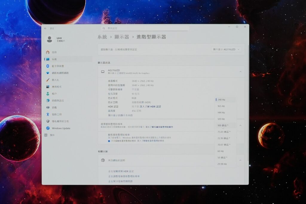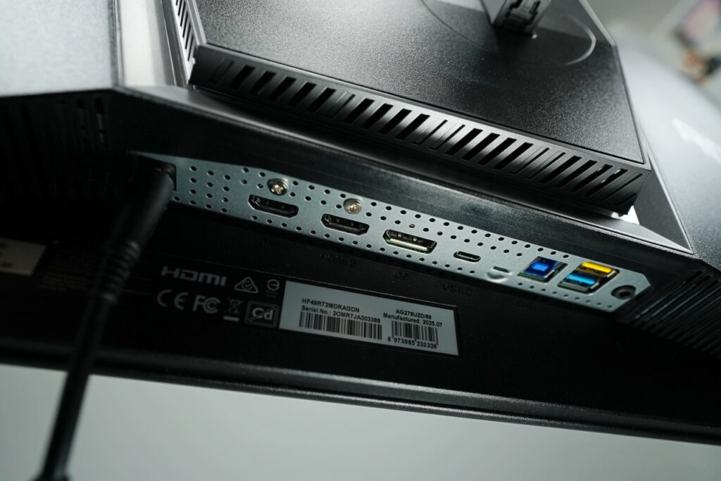 雖然AG276UZD屬於較為入門的27吋4K OLED,但其提供的介面則非常出色,除了兩組HDMI2.1之外,DP更是入門型號中少有使用2.1的型號,相比HDMI2.1的48Gbps全速頻寬,DP2.1則達到80Gbps之高,速度快近一倍。因此影像資料傳輸質素更高,對於影像發燒友則是一個不錯的入門選擇。