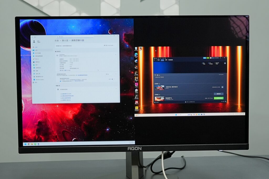 此外,為了方便需要文書工作的用家,AG276UZD更提供PIP及PBP的分屏功能。當中PIP常見功能,可將螢幕分成子母畫面,令用家可將不太重要但需要長期顯示的工作放至子畫面中。至於PBP則是少數螢幕可提供的雙畫面分屏,