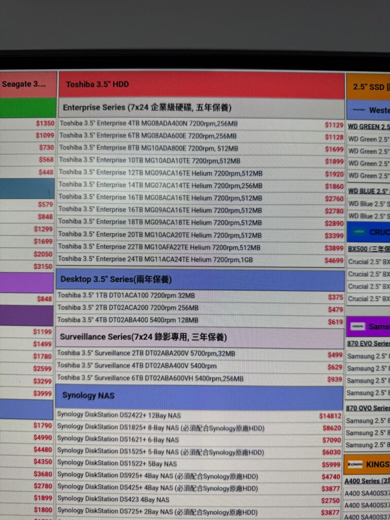 【VG 格價】HDD 硬碟腦場報價 (11-10-2025)